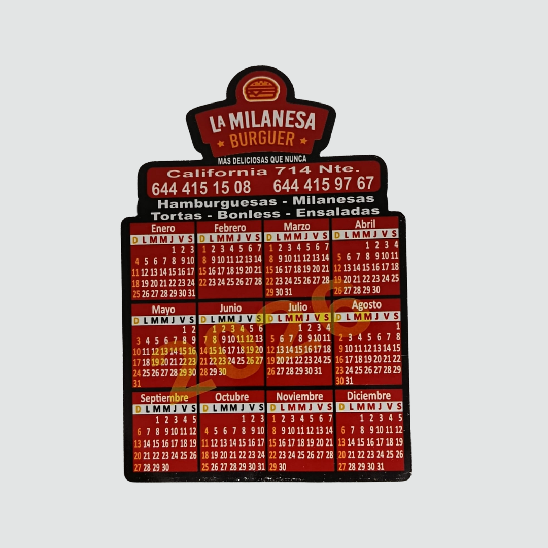 Imán calendario en diferentes medidas.