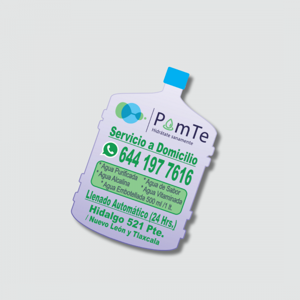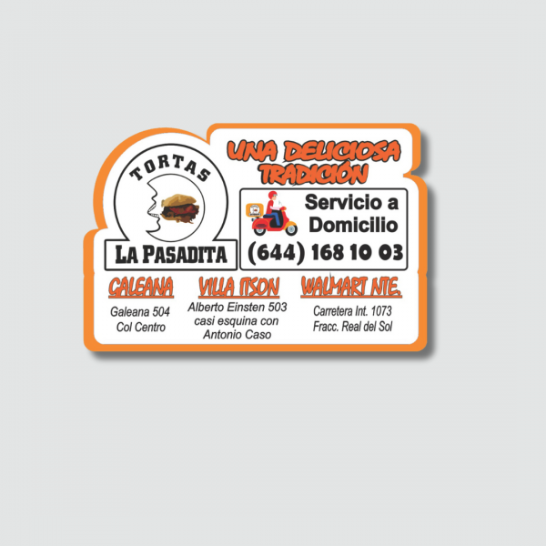 Imán publicitario con corte de figura según tu diseño. Disponible en varias medidas, 5×5, 8×5, 9×6 9×10 centímetros, con impresión a todo color, acabado UV y respaldo imantado calibre 15. Ideal para destacar tu marca de forma original y efectiva. Precio por unidad para pedidos de 100 piezas o más.